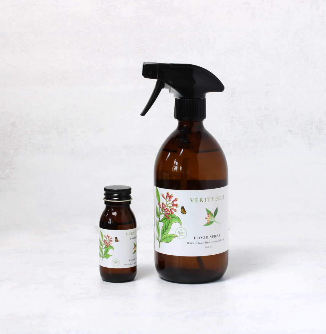 What’s included: 50ml floor spray concentrate in amber glass bottle. 500ml amber glass bottle with trigger spray to be topped up with water and the floor spray concentrate.